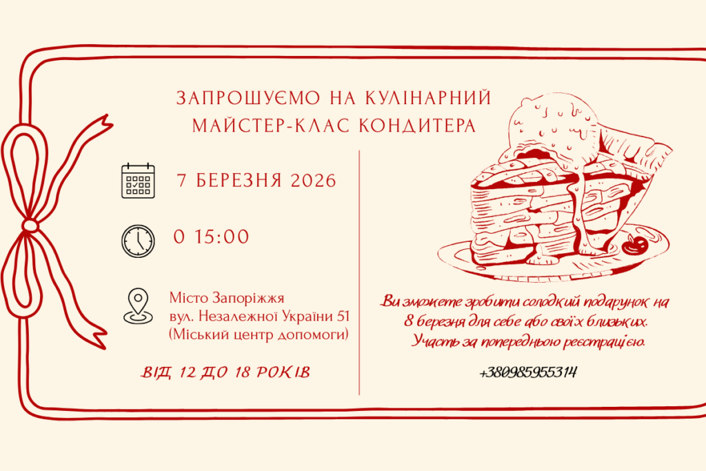 За підтримки World Relief та ГО “Міський Центр Допомоги” у співпраці зі Службою (управлінням) у справах дітей Запорізькї міської ради, наша організація запрошує підлітків віком від 12 до 18 років на майстер-клас кондитера. Ви почуєте реальний досвід власної справи, зможити почути та побачити основи для…